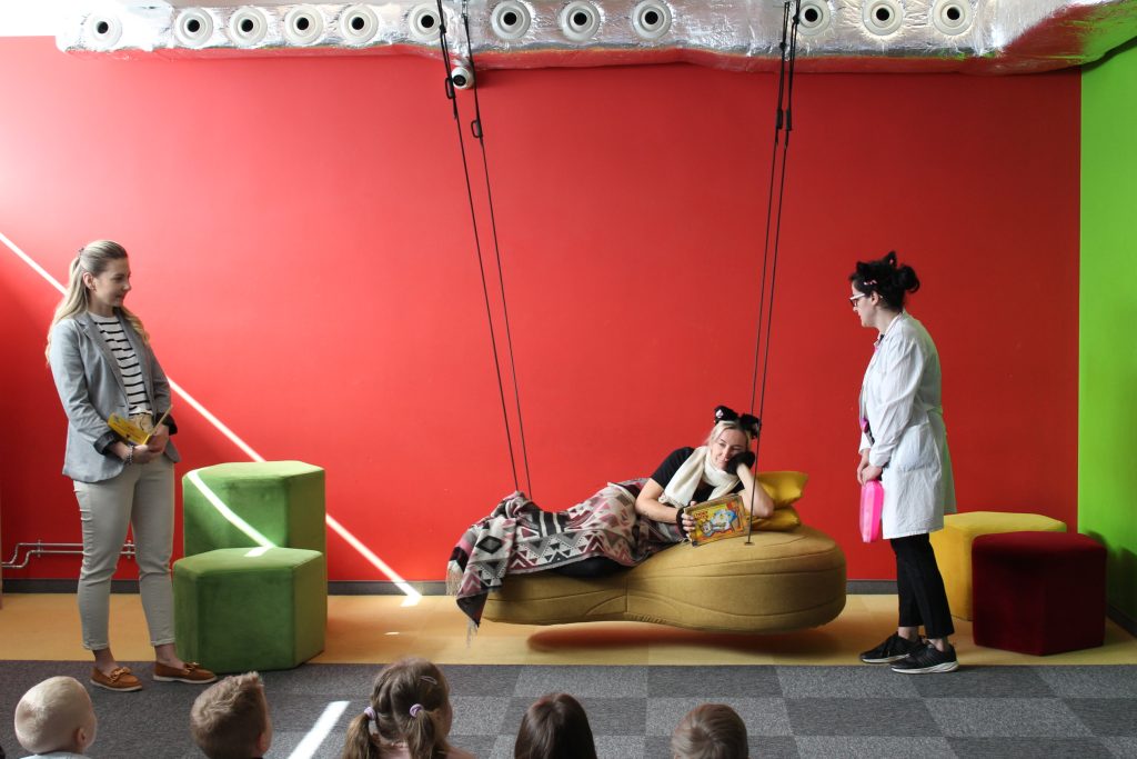 Na widowni zasiadły dzieci z Przedszkole Publiczne nr 35 im. Pluszowego Misia. Pan Kot Doktor wystawił receptę choremu kotkowi. Z kolei dzieci otrzymały biblioteczną receptę, a w niej m. in. zalecenie: 20 minut codziennego czytania.