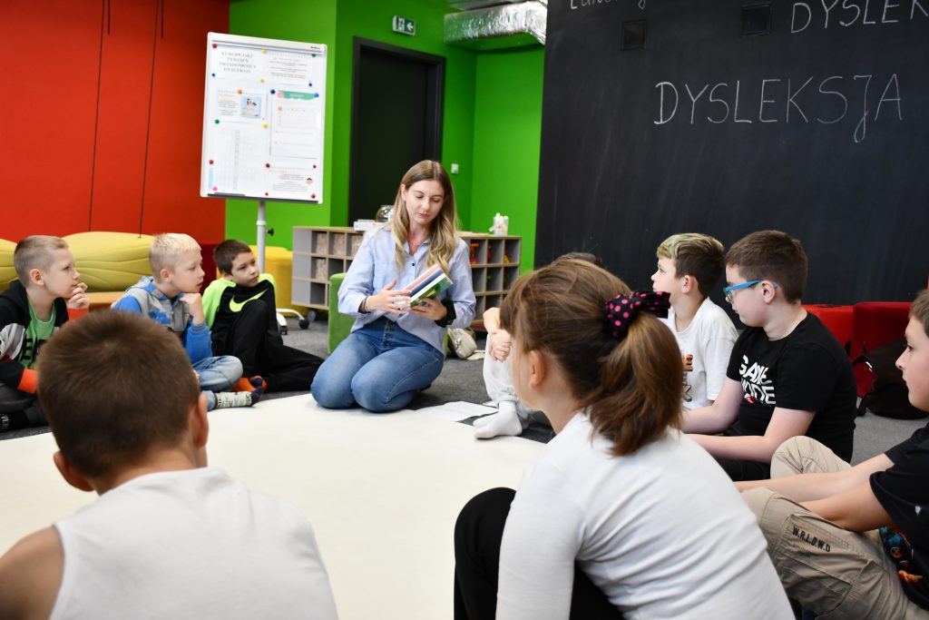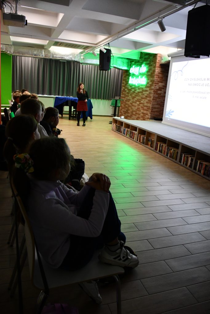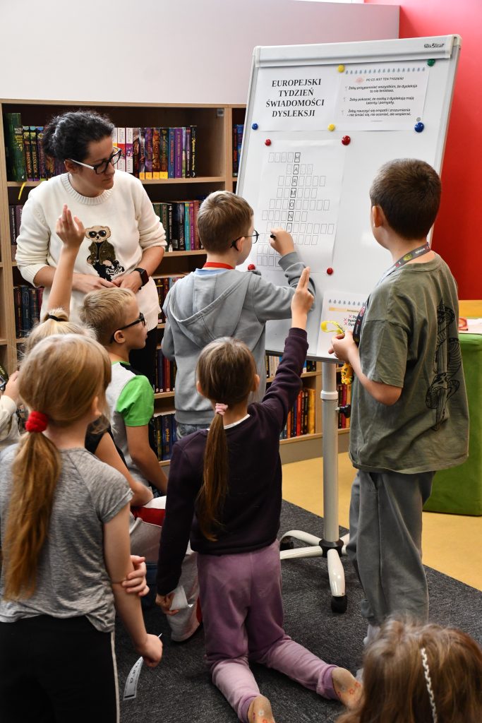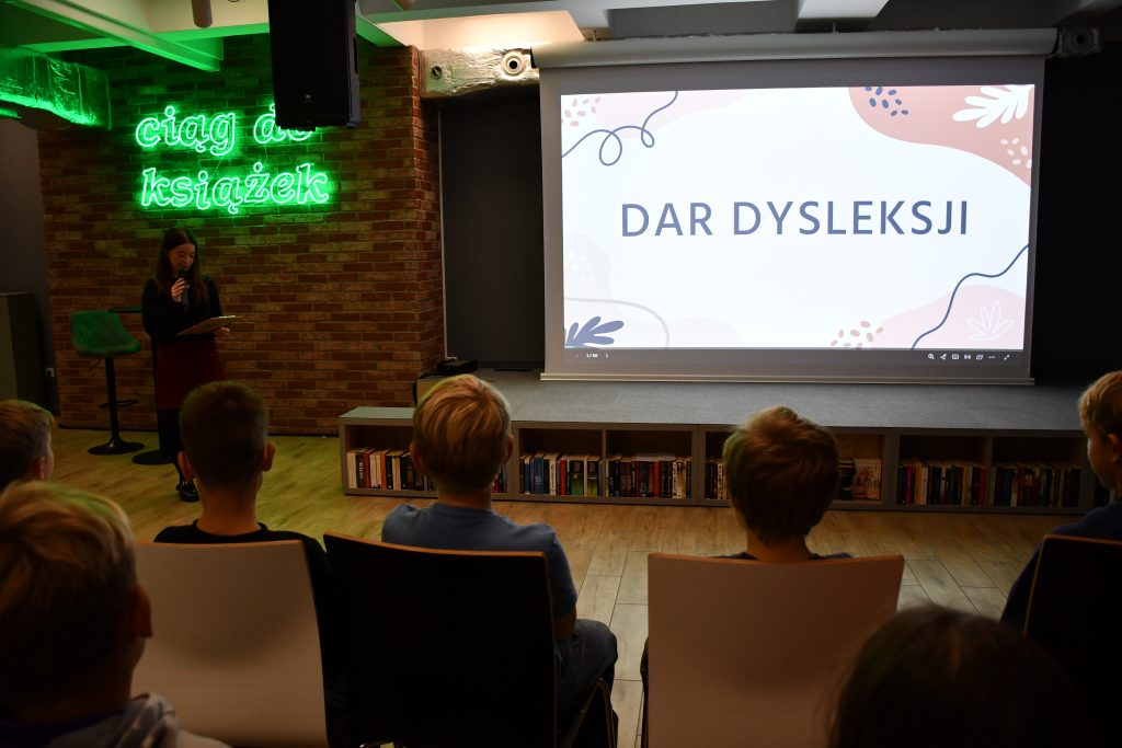 Z kolei starsze dzieci uczestniczyły w lekcji „Dar dysleksji” i miały okazję zwiedzić budynek biblioteki.