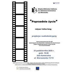W ramach działalności Dyskusyjnego Klubu Filmowego osób niewidomych i niedowidzących zapraszamy na pokaz filmu z audiodeskrypcją pt. „Poprzednie życie” w reżyserii Celine Song. To delikatny i refleksyjny film o niespełnionym uczuciu, sile ludzkich więzi i zmianach jakie zachodzą w nas na przestrzeni lat.