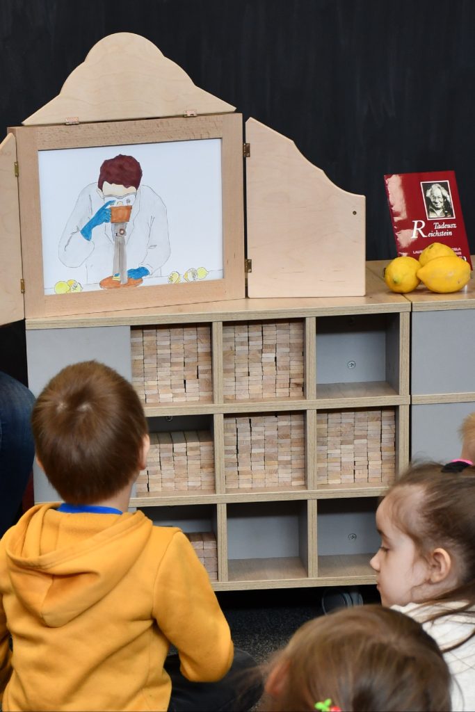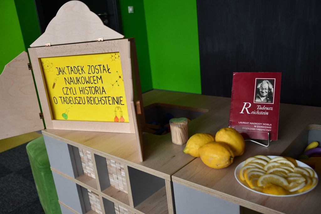 Strefa Dziecka włączyła się w obchody ustanowionego w naszym mieście roku Tadeusza Reichsteina. Zaczęliśmy opowiadaniem o nobliście pt. „Jak Tadek został naukowcem, czyli historia Tadeusza Reichsteina” przedstawionego dzieciom w formie teatrzyku kamishibai. Teatrzyk przypadł najmłodszym do gustu, co pozwoliło przybliżyć sylwetkę i osiągnięcia urodzonego we Włocławku naukowca. Następnie urządziliśmy prawdziwie witaminowe przyjęcie, nie zapominając przy tym o potężnej i zdrowej dawce witaminy C.