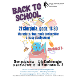W sam raz do plecaka na nowy rok szkolny! 21 sierpnia zapraszamy na warsztaty „Back to school”, na których wykonamy kolorowe, oryginalne breloczki z masy plastycznej.