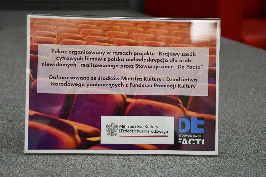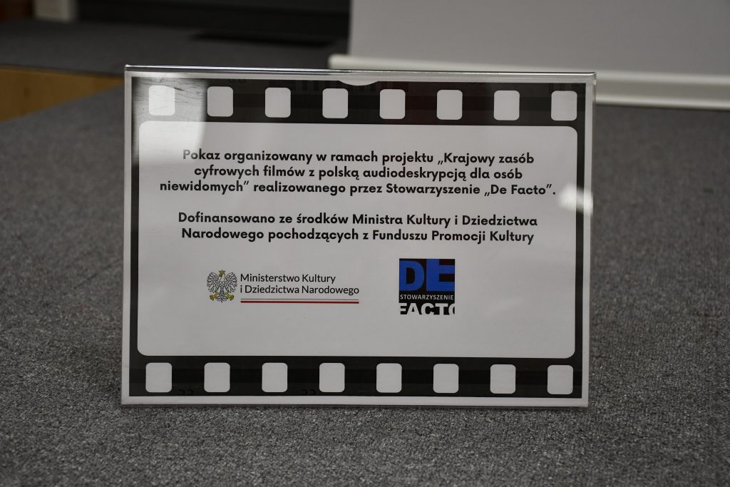 Pokaz zorganizowany był w ramach projektu „Krajowy zasób cyfrowych filmów z polską audiodeskrypcją dla osób niewidomych” realizowanego przez Stowarzyszenie „De Facto”. Inicjatywę dofinansowano ze środków Ministra Kultury i Dziedzictwa Narodowego, pochodzących z Funduszu Promocji Kultury.