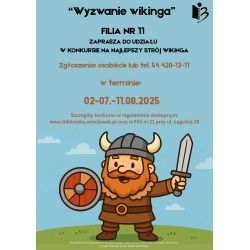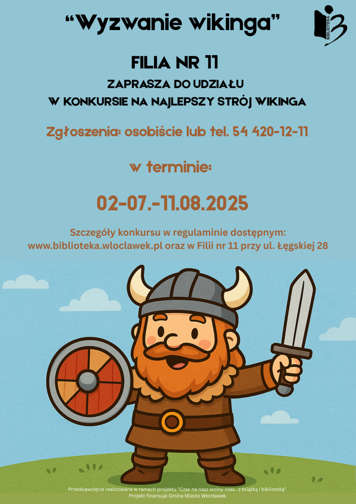 Podejmij „Wyzwanie wikinga” i weź udział w konkursie dla dzieci i młodzieży na najlepszy strój wikinga organizowanym przez Filię nr 11 Miejskiej Biblioteki Publicznej im. Zdzisława Arentowicza we Włocławku.