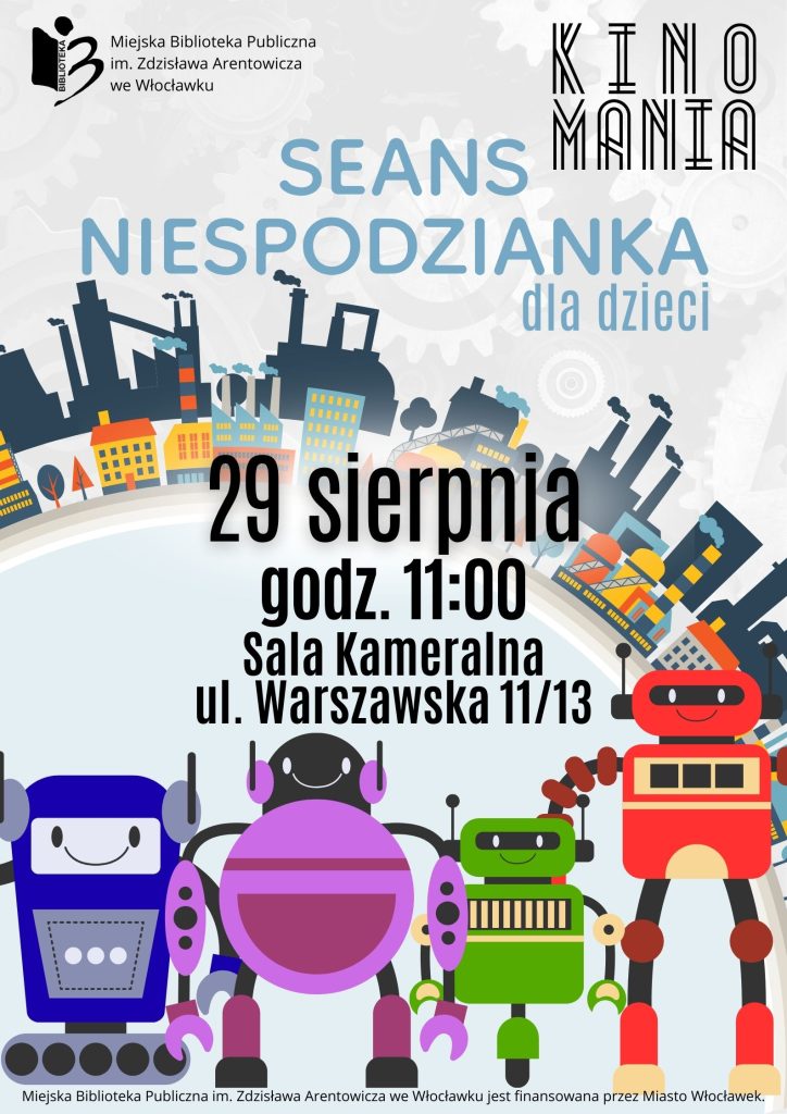 Na zakończenie wakacji mamy seans-niespodziankę dla dzieci. Tym razem bohaterami filmu są mechaniczni przyjaciele, którzy odkryją ważną prawdę, walcząc razem o lepszą przyszłość.