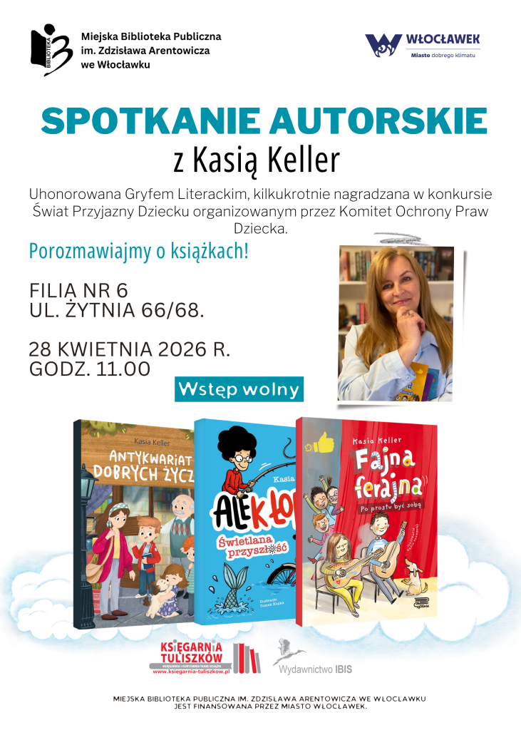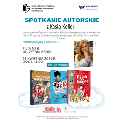 Filia nr 6 z oddziałem dla dzieci, zaprasza młodych czytelników na wyjątkowe spotkanie z Kasią Keller – popularną pisarką, autorką uwielbianych książek dla najmłodszych i nieco starszych.