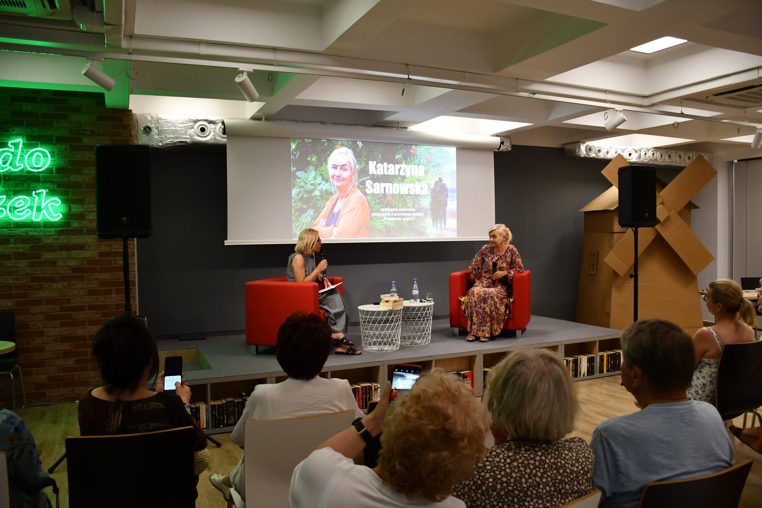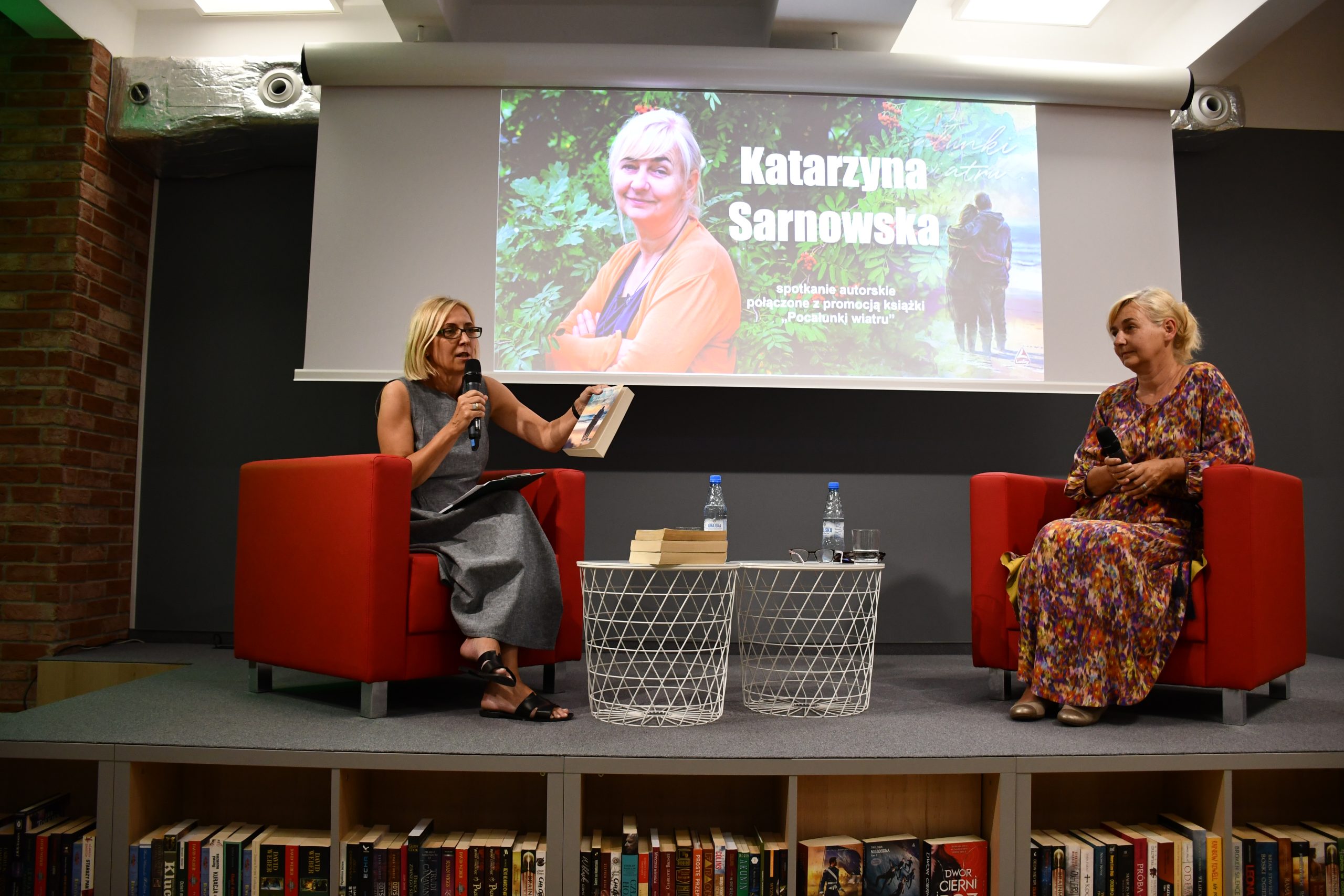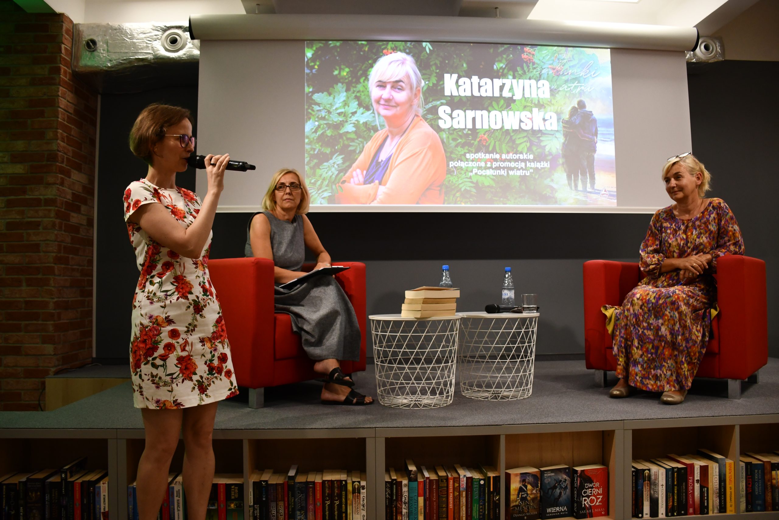 Wczoraj w Sali Kameralnej odbyło się spotkanie autorskie z Katarzyną Sarnowską, który było połączone z promocją jej najnowszej książki „Pocałunki wiatru”. Pani Katarzyna z zawodu jest tłumaczką języka angielskiego i pisarką z zamiłowania. Jej książki, pozornie dedykowane kobietom, mogą być doskonałą szkołą życia dla każdego, również dla mężczyzn. Opowiedziała przybyłym, jak rodzinne historie w lekko zmienionej formie, mogą stanowić oś przewodnią dla sentymentalnych powieści. Mowa tu „Miłości w kolorze sepii” , której fabuła toczy się w przedwojennym Włocławku.