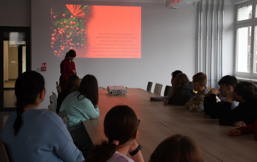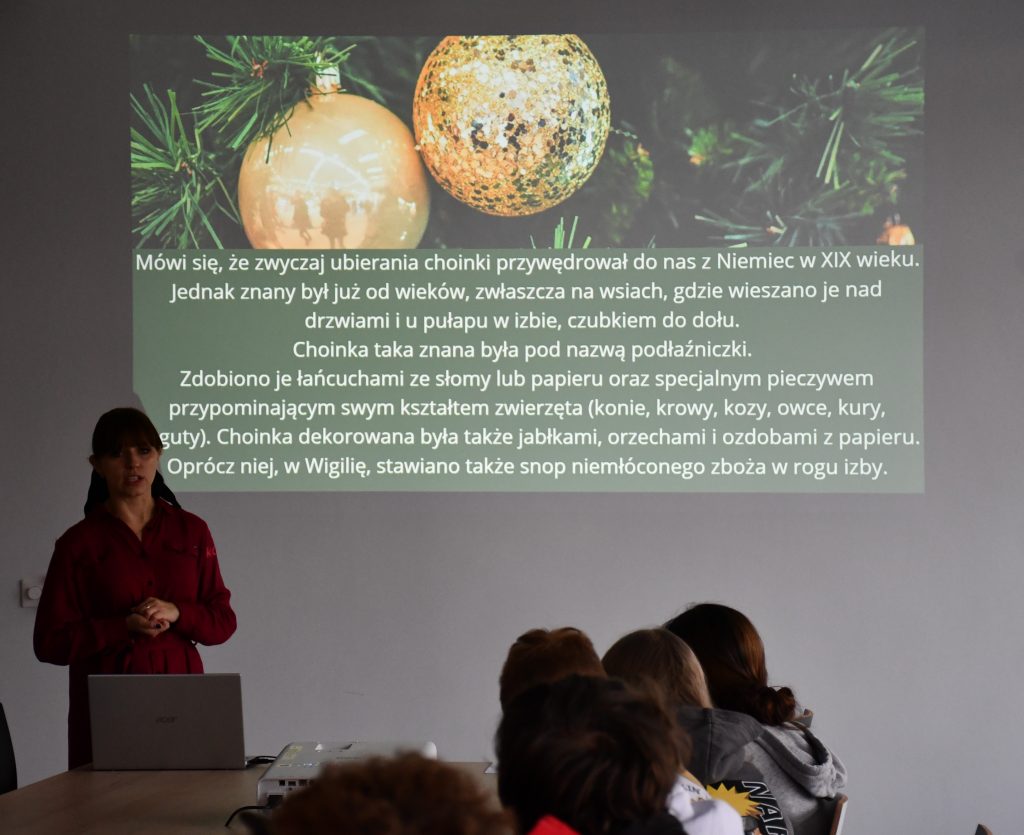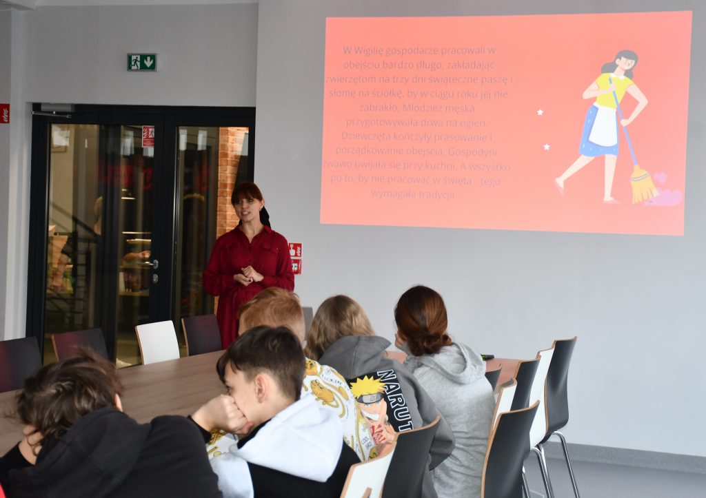Jagły, podłaźniczka, jasełka… i wiele innych mniej lub bardziej współczesnych pojęć i zwyczajów związanych z tradycją Świąt Bożego Narodzenia mieli okazję poznać uczniowie 👱♀️👱 klasy VII Szkoły Podstawowej nr 10 im 2 Armii Wojska Polskiego we Włocławku, którzy wczoraj uczestniczyli w świątecznej lekcji bibliotecznej. Młodzież wzbogaciła się o wiedzę o początkach celebrowania Świąt Bożego Narodzenia🎄❄️🌠 i symbolice wigilijnego wieczoru. Odpowiedzieliśmy, dlaczego tego dnia obdarowujemy się prezentami, łamiemy się opłatkiem i kosztujemy dwunastu tradycyjnych potraw. W szczególności jednak młodzi ludzie mieli okazję zapoznać się z kultywowanymi przed laty, jak i dziś kujawskimi zwyczajami bożonarodzeniowymi. Lekcję przygotował Dział Informacji Regionalnej i bibliograficznej.