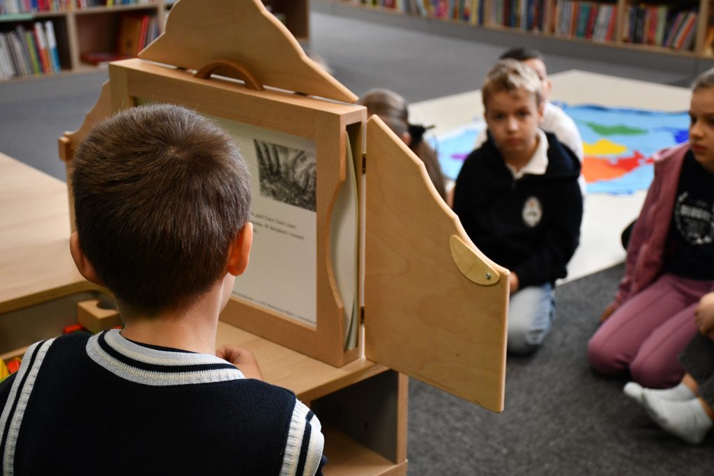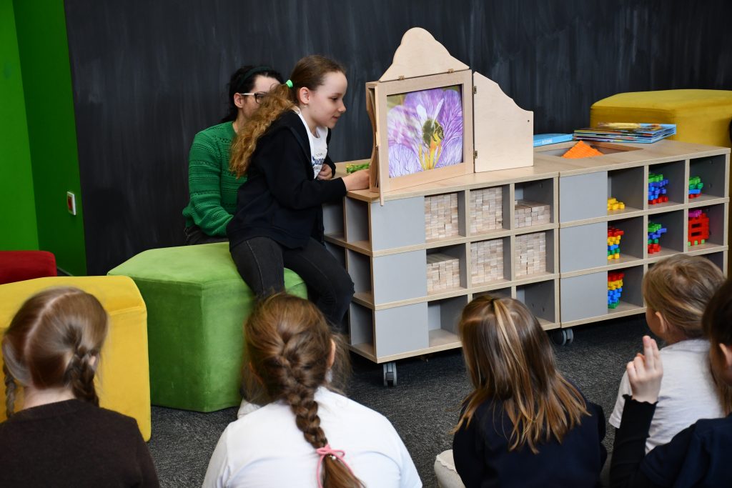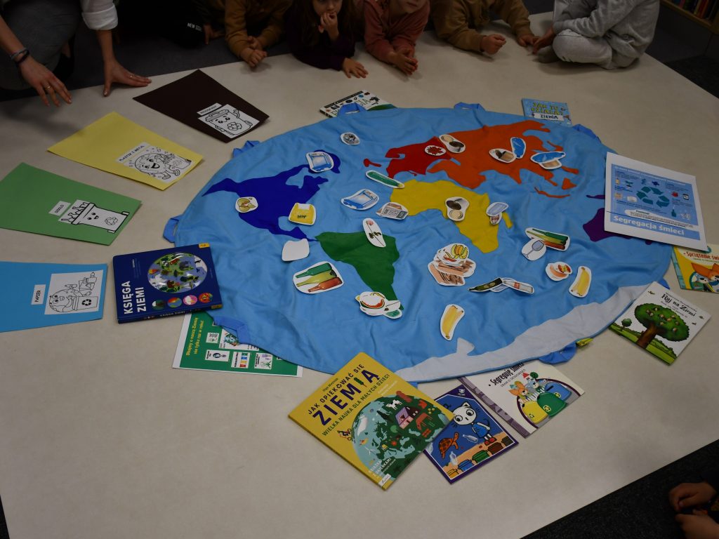 Do świata opowieści o naszej planecie zaprosił dzieci teatrzyk kamishibai z bajką „Jak żyje Ziemia”, a także przestrzenne książeczki POP-UP ilustrujące jej piękne oblicze.