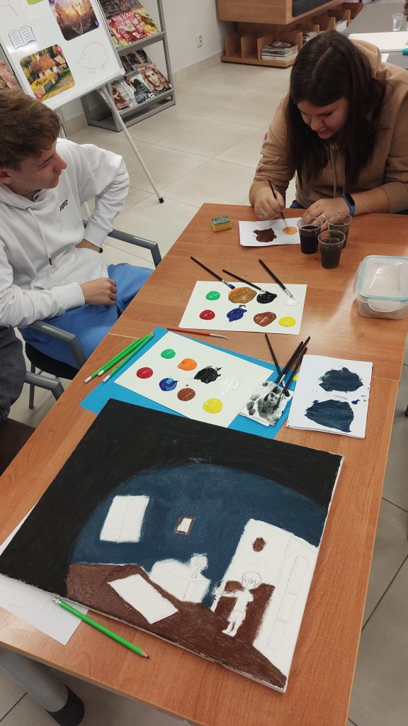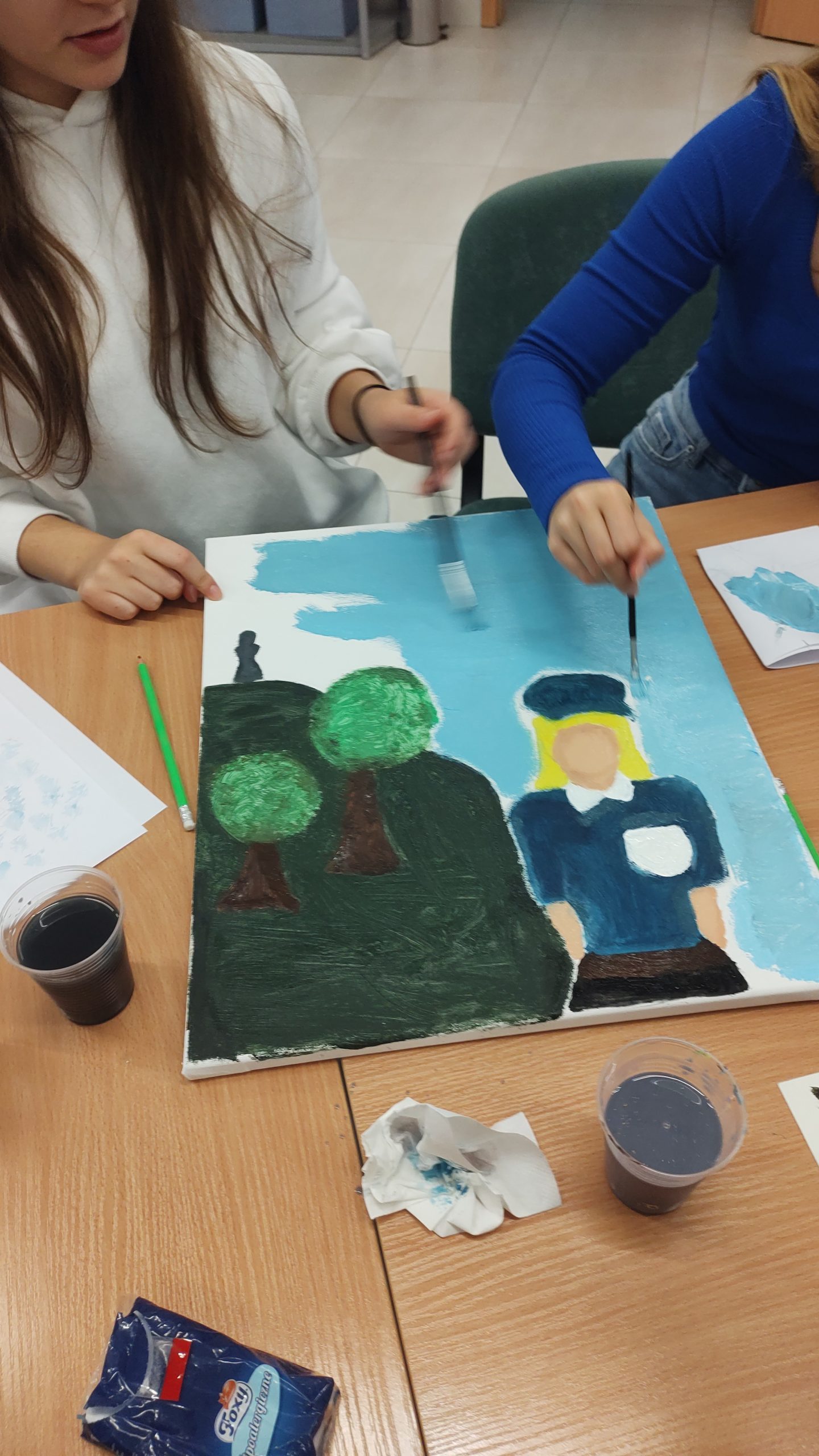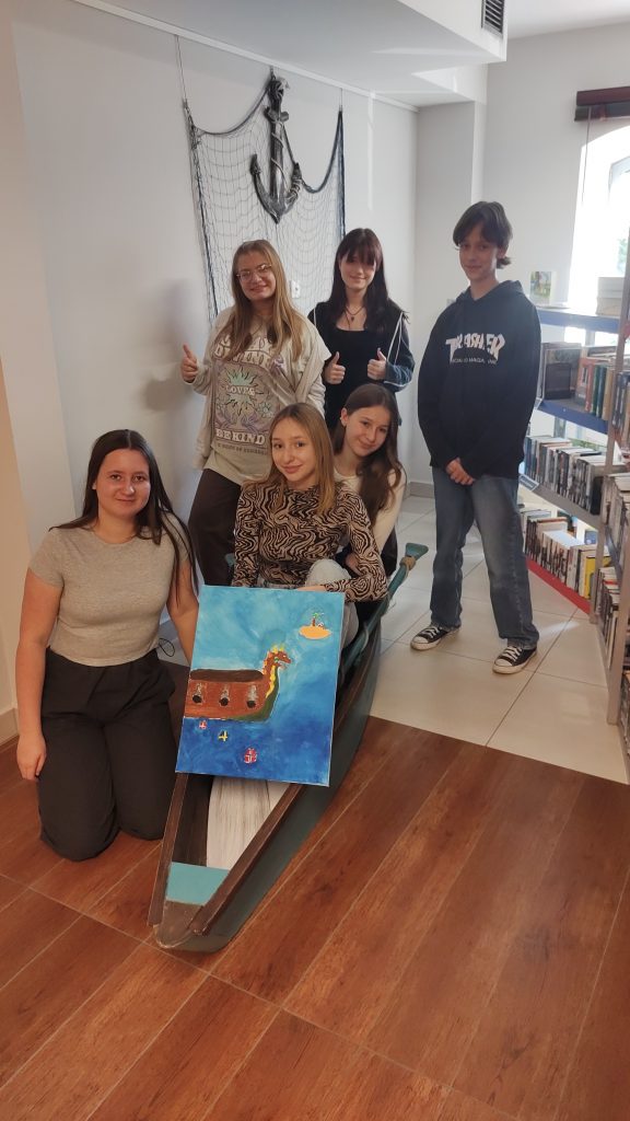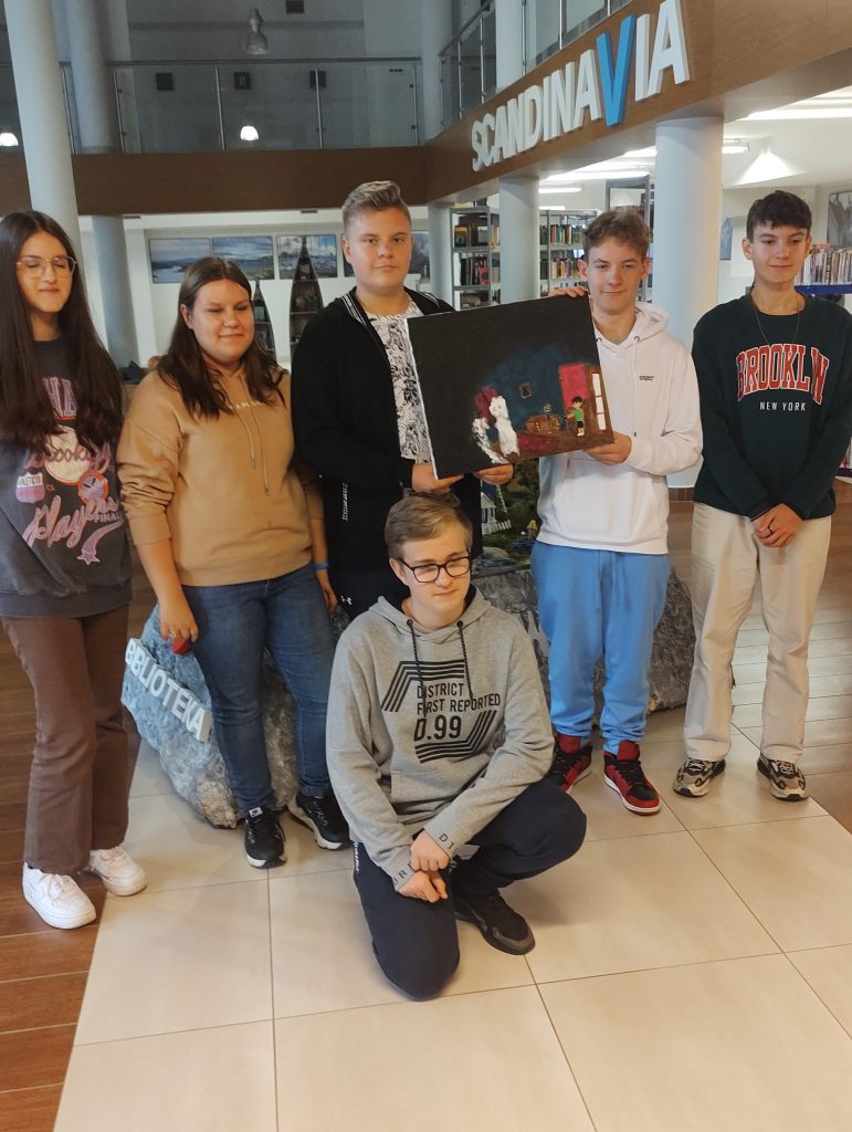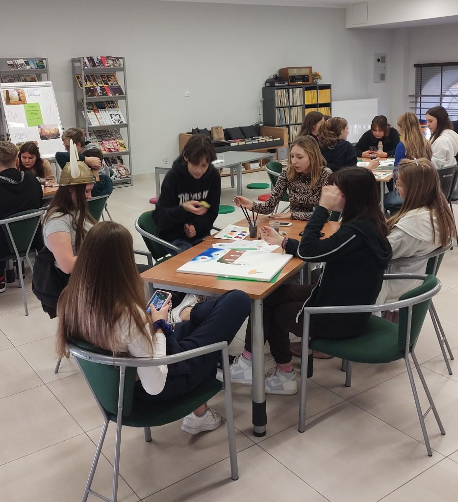 Filię nr 11 odwiedzili uczniowie klasy IE z III-go Liceum Ogólnokształcącego im. Marii Konopnickiej we Włocławku. Wykazali się ogromną kreatywnością podczas tworzenia własnych wersji okładek tytułowych, na podstawie wybranych przez bibliotekarki blurbów. Młodzież zwizualizowała swoje pomysły na płótnach malarskich, przy użyciu kolorowych farb.