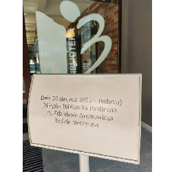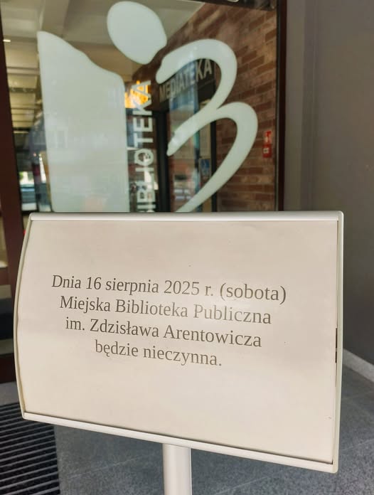 Dnia 16 sierpnia 2025 r. (sobota) Miejska Biblioteka Publiczna im. Zdzisława Arentowicza przy ul. Warszawskiej 11/13 oraz filie biblioteczne będą nieczynne.