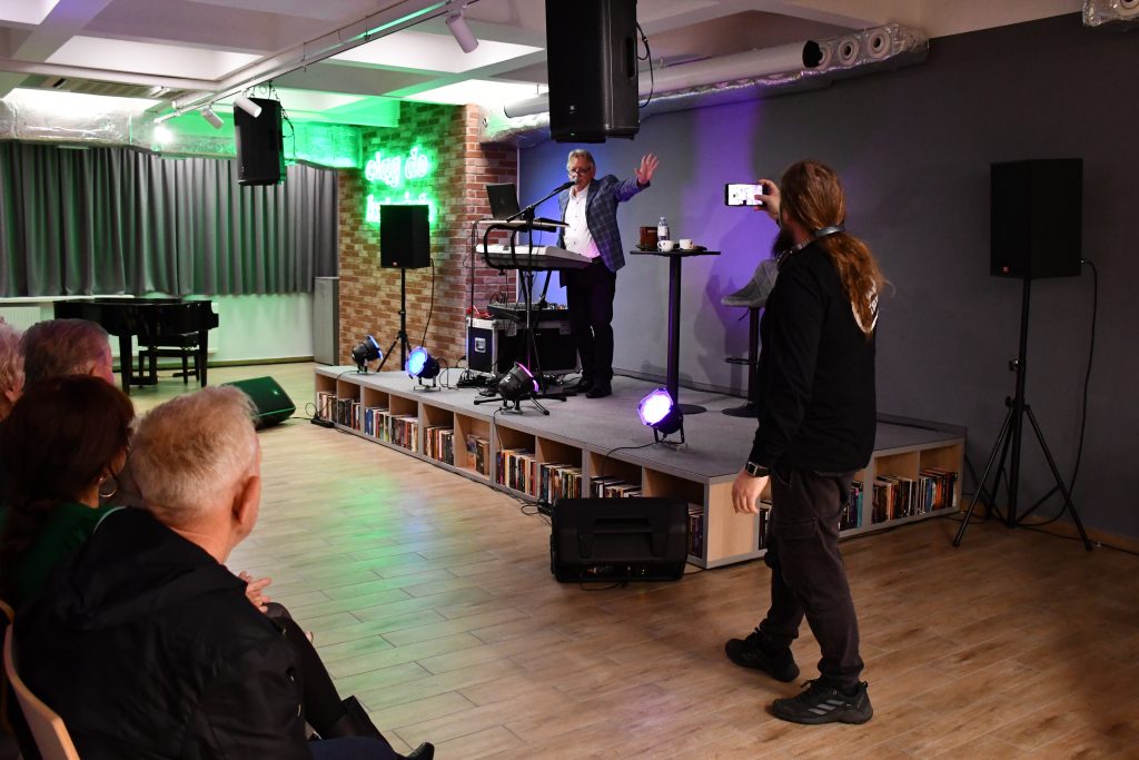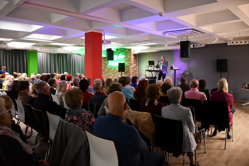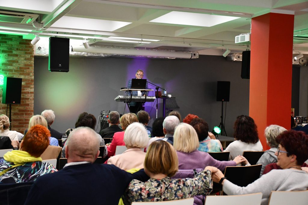 W minioną sobotę, 4 października 2025 r., z okazji „Weekendu seniora z kulturą” gościliśmy w bibliotece Wiesława Herliczko. Uczestnik drugiej edycji The Voice Senior zaprezentował bogaty repertuar muzyczny, dzięki czemu porwał sporą część widowni do tańca. Słuchaliśmy przebojów m.in. Maryli Rodowicz, Zbigniewa Wodeckiego, Leonadra Cohena, czy Jerzego Połomskiego. Dla czytelników, którzy interesują się muzyką polecamy biografie atrystów, znajdujące się w Mediatece.