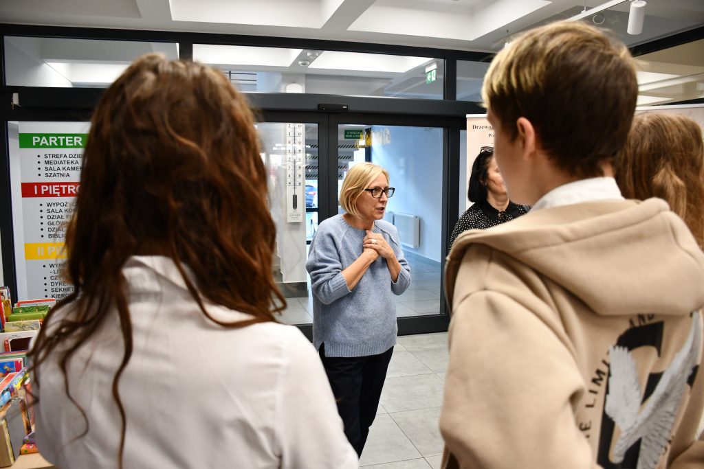 Młodzież zajrzała do Strefy Dziecka, Mediateki, dwupoziomowej wypożyczalni, a także do działów wewnętrznych, które na co dzień pozostają poza zasięgiem czytelników. Zerknęli nawet na magazynowanie zwarte.