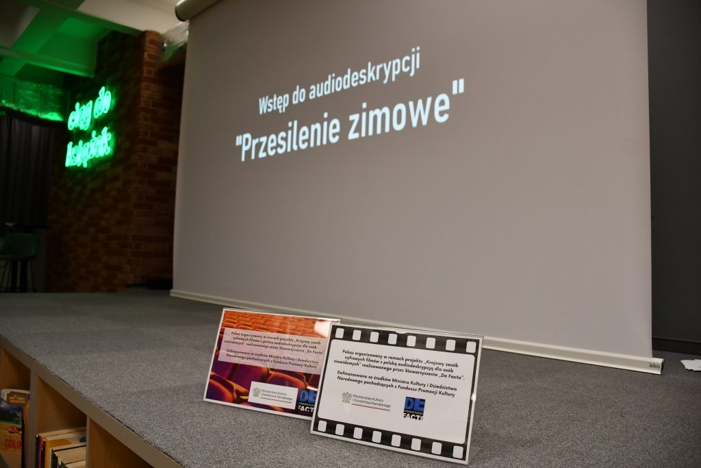 Pokaz zorganizowany był w ramach projektu „Krajowy zasób cyfrowych filmów z polską audiodeskrypcją dla osób niewidomych” realizowanego przez Stowarzyszenie „De Facto”. Inicjatywę dofinansowano ze środków Ministra Kultury i Dziedzictwa Narodowego, pochodzących z Funduszu Promocji Kultury.