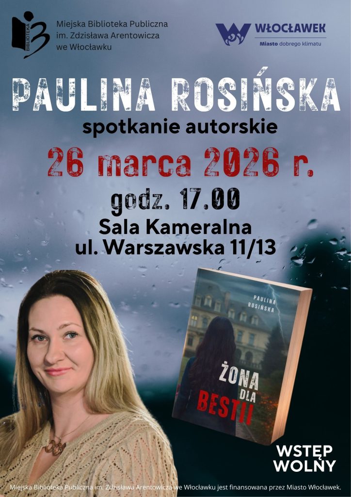 Paulina Rosińska to debiutująca autorka, pochodząca z Włocławka. Jej książka „Żona dla bestii” to historia, w której studencka codzienność splata się z elementami romansu, niczym z dawnej baśni. Bohaterka książki to pilna studentka, zawsze rozważna, nigdy nie zrobiła nic szalonego. Zaś główny bohater to tajemnica, której nie sposób się oprzeć. A między nimi… ogłoszenie matrymonialne, które wszystko wywróci do góry nogami.